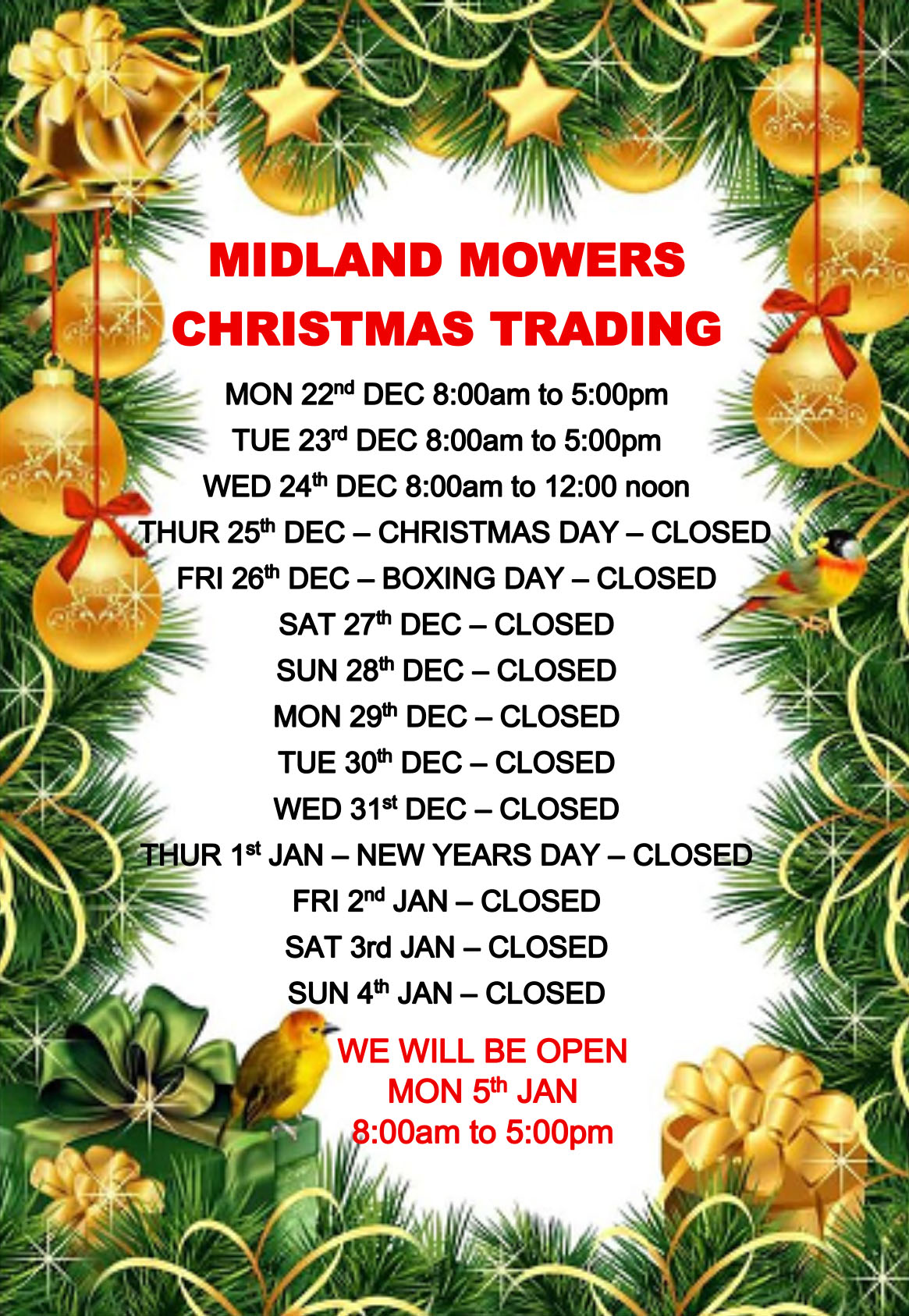 Contact or Call in and See Us Midland Mowers & The Briggs Shop367 Great Eastern Hwy(formerly 20 Elliott Street)Midvale WA 6056Telephone: (08) 9250 2468Fax: (08) 9274 4868 Hours of Business Monday to Friday 8am – 5:00pmSaturday 8am – 12:30pm Send us an Email request Name Email Phone Message